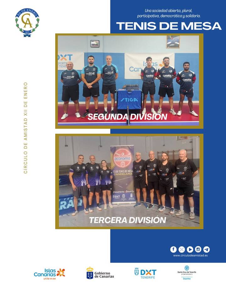 El Círculo de Amistad XII de Enero cerró este fin de semana con doble triunfo de los equipos de Segunda y Tercera División. El choque de Segunda fue un encuentro muy igualado, resuelto en el partido de dobles ante un equipo que puso las cosas muy difíciles, el Arucas TM.
